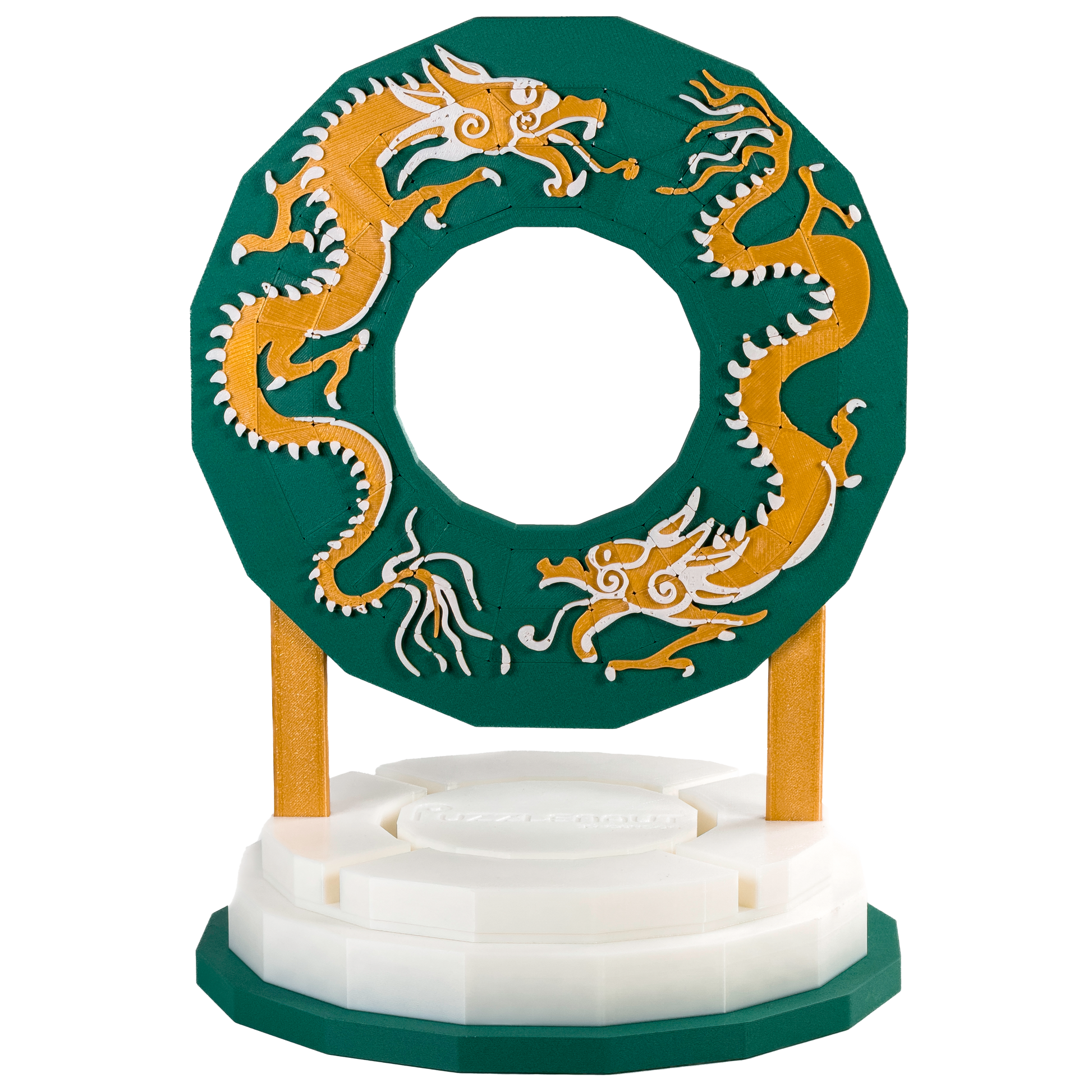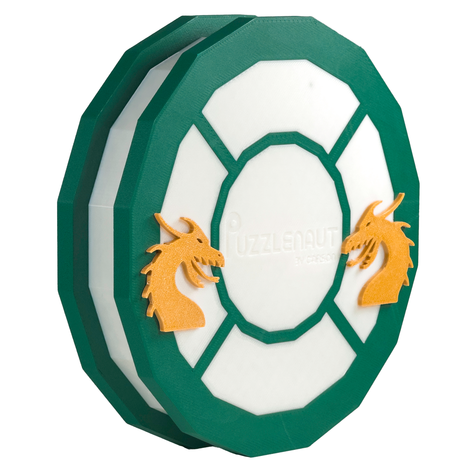 Order this limited edition, high-end, 3D-printed puzzle designed with detail in mind. The Dragonaut puzzle is the puzzle to challenge yourself with. (I give it a 10/10 difficulty rating.) Don’t let the beautiful design fool you though, hidden within the emerald greens, golden yellows, and ivory base is a meticulously crafted image of dueling dragons made of premium carbon fiber PETG filament.